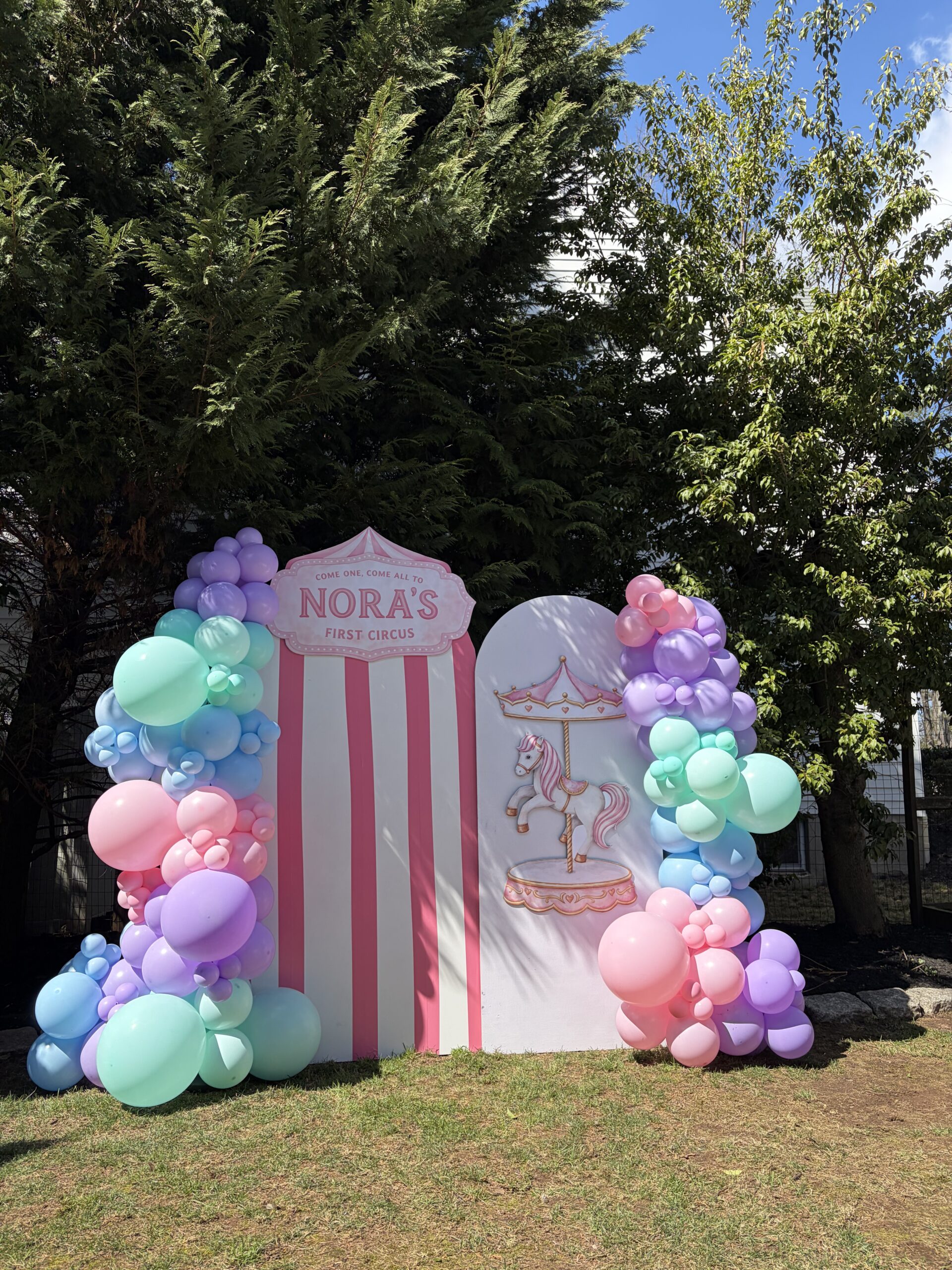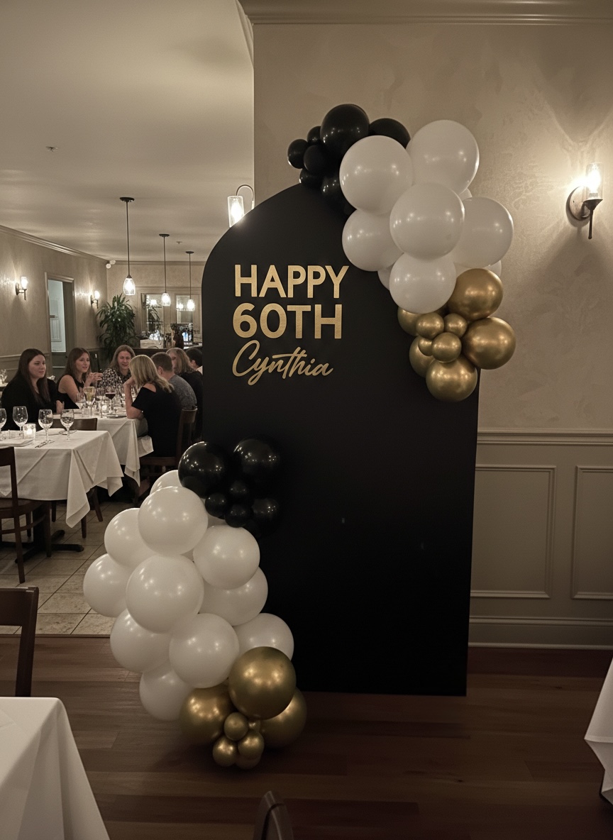 demure balloons for a birthday set up