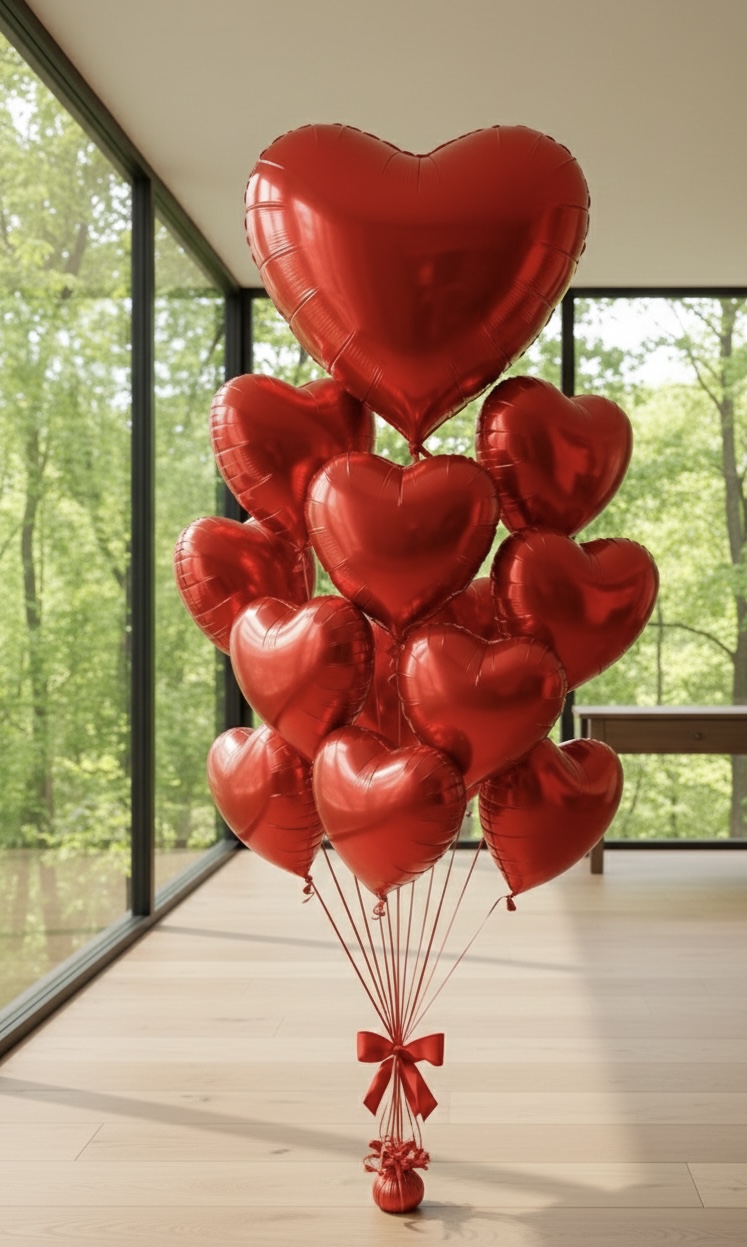 • Includes one large Red Heart Mylar Balloon and ten 18-inch red heart Mylar balloons